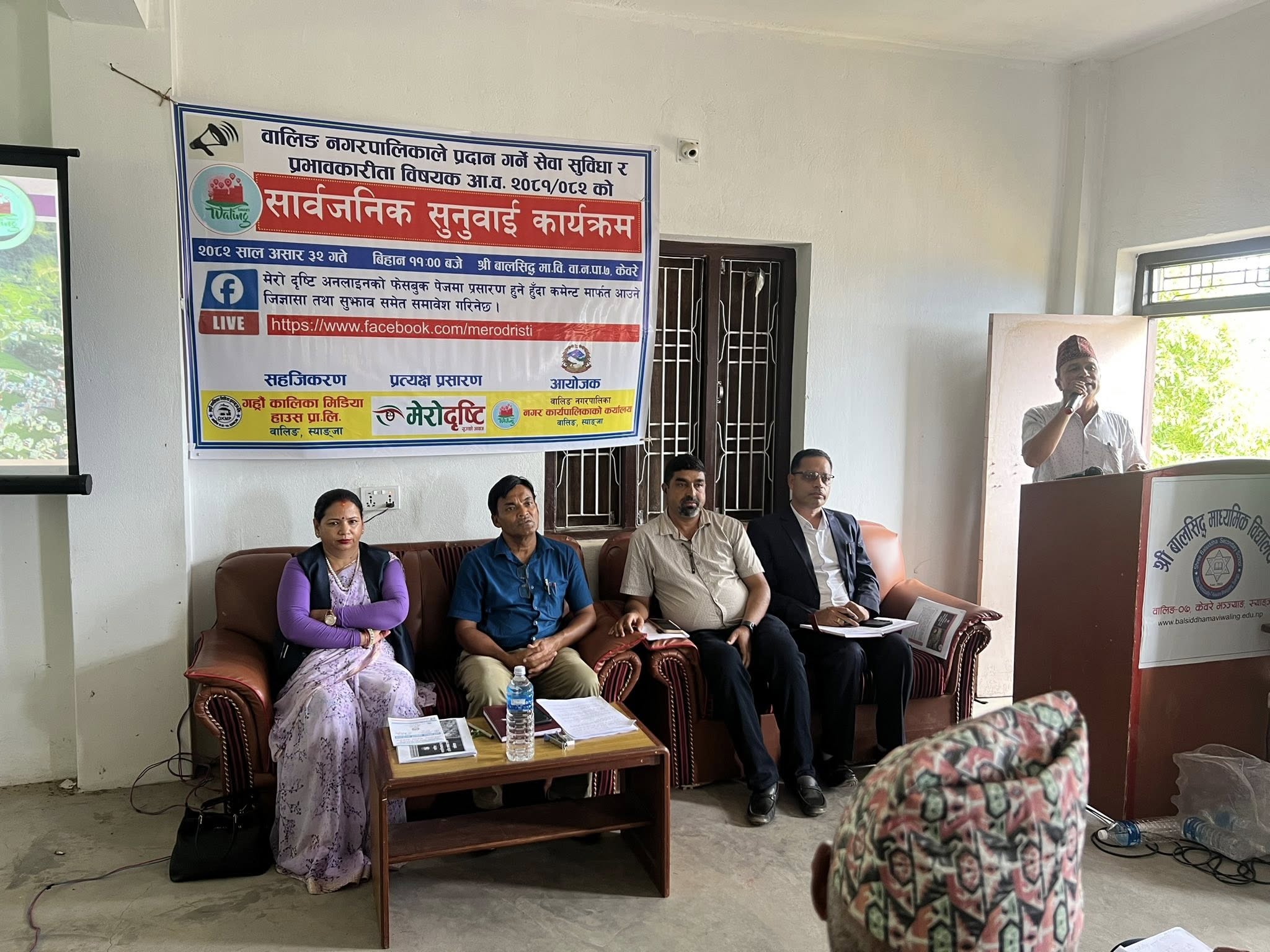 वालिङ नगरपालिकाको आयोजनामा बुधबार वालिङ ७ केवरेमा सार्वजनिक सुनुवाई गरिएको छ । वालिङ नगरपालिकाले आर्थिक वर्ष २०८१÷०८२ मा प्रदान गरेका सेवा सुविधा र प्रभावकारिताका विषयमा केवरेस्थित बालसिद्ध माविको सभाहलमा सार्वजनिक सुनुवाई गरेको हो ।