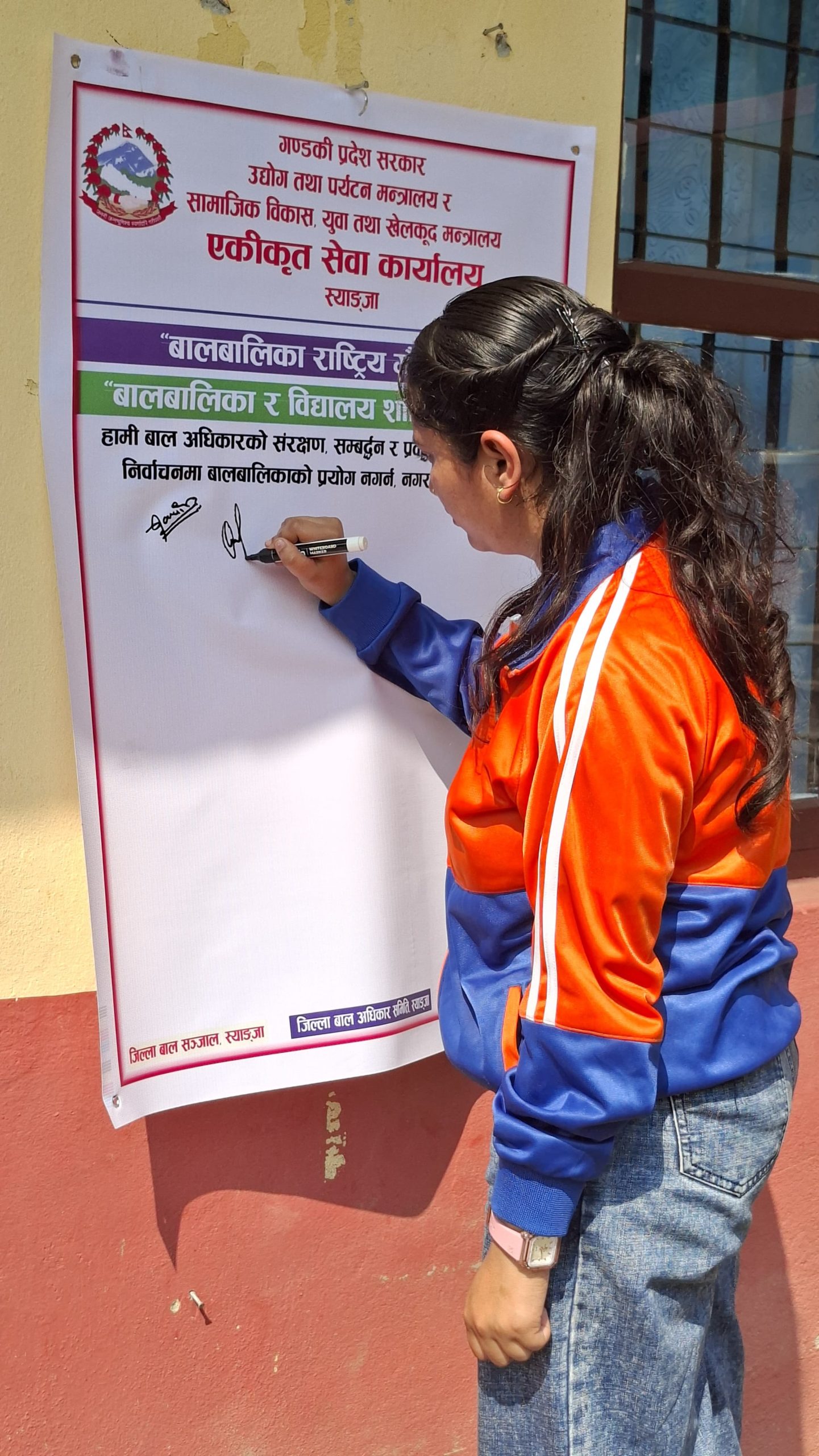 फागुन २१ गते हुन गइरहेको प्रतिनिधिसभा निर्वाचनमा बालबालिकाहरुको प्रयोग नगर्न र नगराउन प्रतिवद्धताको लागि हस्ताक्षर संकलन गरिएको छ । बालअधिकारको संरक्षण, सम्बर्द्धन र प्रवर्द्धनको सुनिश्चित गर्न निर्वाचनको प्रचारप्रसार, जुलुस, नाराबाजी लगायतमा बालबालिकाको प्रयोग गर्न/ गराउन नहुने वातावरण सुनिश्चितताको लागि प्रतिवद्धतामा हस्ताक्षर सुरु गरिएको एकिकृत सेवा कार्यालय प्रमुख जीवन पौडेलले जानकारी दिनुभयो । विद्यमान बालबालिका र निर्वाचनसम्बन्धी कानुनी व्यवस्था र निर्वाचन आचारसंहिता, २०८२ मा भएको व्यवस्था बमोजिम १८ वर्ष उमेर पूरा नगरेका बालबालिकालाई कुनै पनि राजनीतिक दल वा उम्मेदवारले चुनावसम्बन्धी प्रचारप्रसार, स्वागत तथा सम्मान, आमसभा, कोणसभा जुलुस, अभियान तथा बैठकमा सहभागी गराउन र त्यस्ता दल, संगठन वा समूहमा संगठित हुन निषेध गरेको उल्लेख गरेको छ । एकिकृत सेवा कार्यालय स्याङ्जा, जिल्ला बालअधिकार समिति स्याङ्जा र जिल्ला बाल सञ्जाल स्याङ्जाको संयुक्त प्रयास तथा आयोजनामा जिल्लाका राजनीति दल, उमेदबार, नागरिक समाज, शिक्षक र सम्पूर्ण सरोकारवालालाई सहभागी गराएर हस्ताक्षर अभियान जारी राखिने भएको छ ।