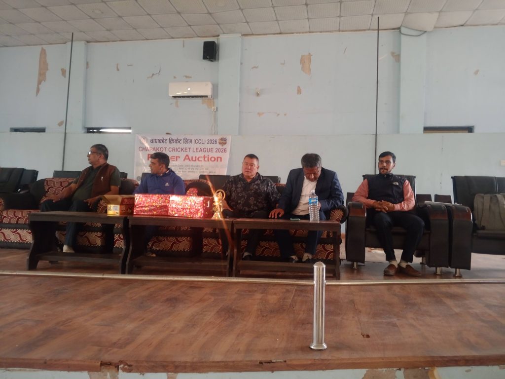 यसैबीच चापाकोट क्रिकेट लीगका लागि आज खेलाडीहरूको अक्सन कार्यक्रम सम्पन्न भएको छ । अक्सन कार्यक्रमलाई सम्बोधन गर्दै चापाकोट नगरपालिकाका नगरप्रमुख देवबहादुर खाँण ‘ईश्वर’ले खेलाडीहरूको क्षमता विकास र खेलकुदका विविध गतिविधि सञ्चालनका लागि नगरपालिका सधैँ सकारात्मक रहेको बताउनुभयो । उहाँले आगामी दिनमा हुने खेलकुदका अन्य कार्यक्रमहरूमा पनि नगरपालिकाले आवश्यक सहयोग गर्ने प्रतिबद्धता व्यक्त गर्नुभयो ।